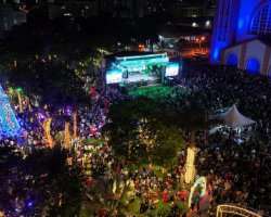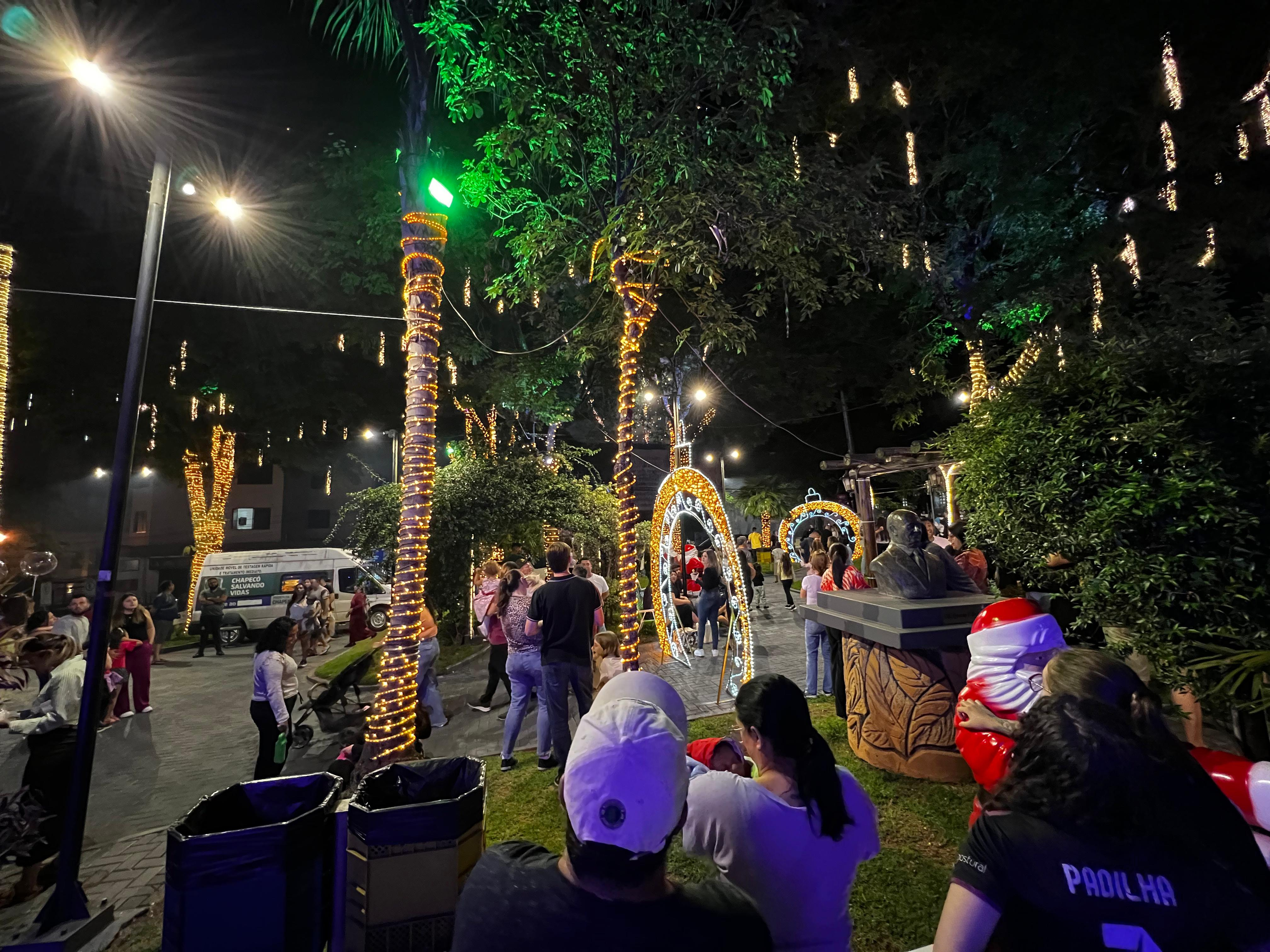 A abertura do Natal da Família de Chapecó foi realizada nesta quinta-feira, na Praça Coronel Bertaso, com a inauguração das luzes, decoração, shows, mensagens religiosas, show com o Padre Ezequiel e, claro, a presença do Papai Noel.