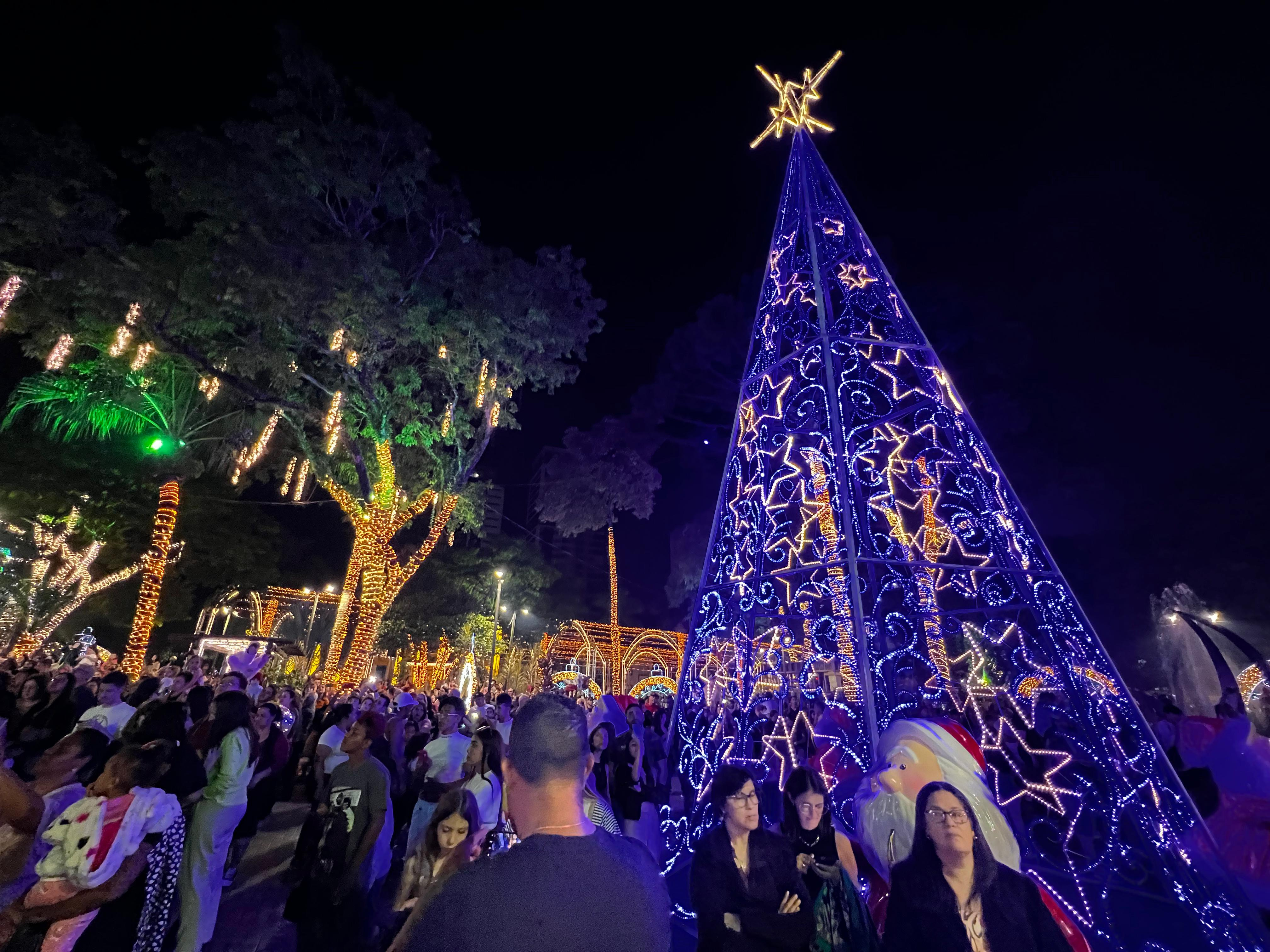 Nesta sexta-feira (15), às 19h30, terá a inauguração das luzes e decoração no Ecoparque, com show de Michelli Fortes e artistas locais, além da abertura da Casinha do Papai Noel.