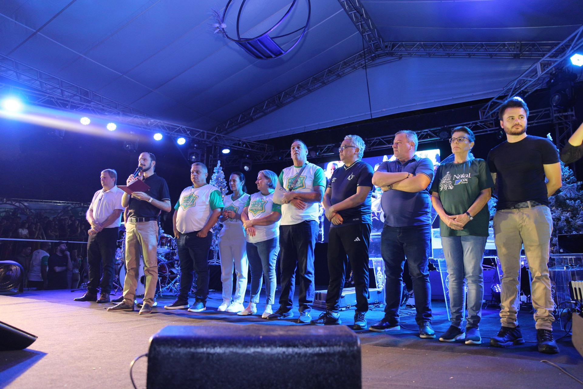 Cerca de 14 mil pessoas estiveram no Ecoparque na noite desta sexta-feira (14), para a abertura do Natal da Família e inauguração da decoração e iluminação do local. Estava até difícil de andar pelo local de tanta gente. Somando com a abertura realizada na Praça Coronel Bertaso, na quinta-feira, cerca de 20 mil pessoas prestigiaram a programação natalina em apenas dois dias.