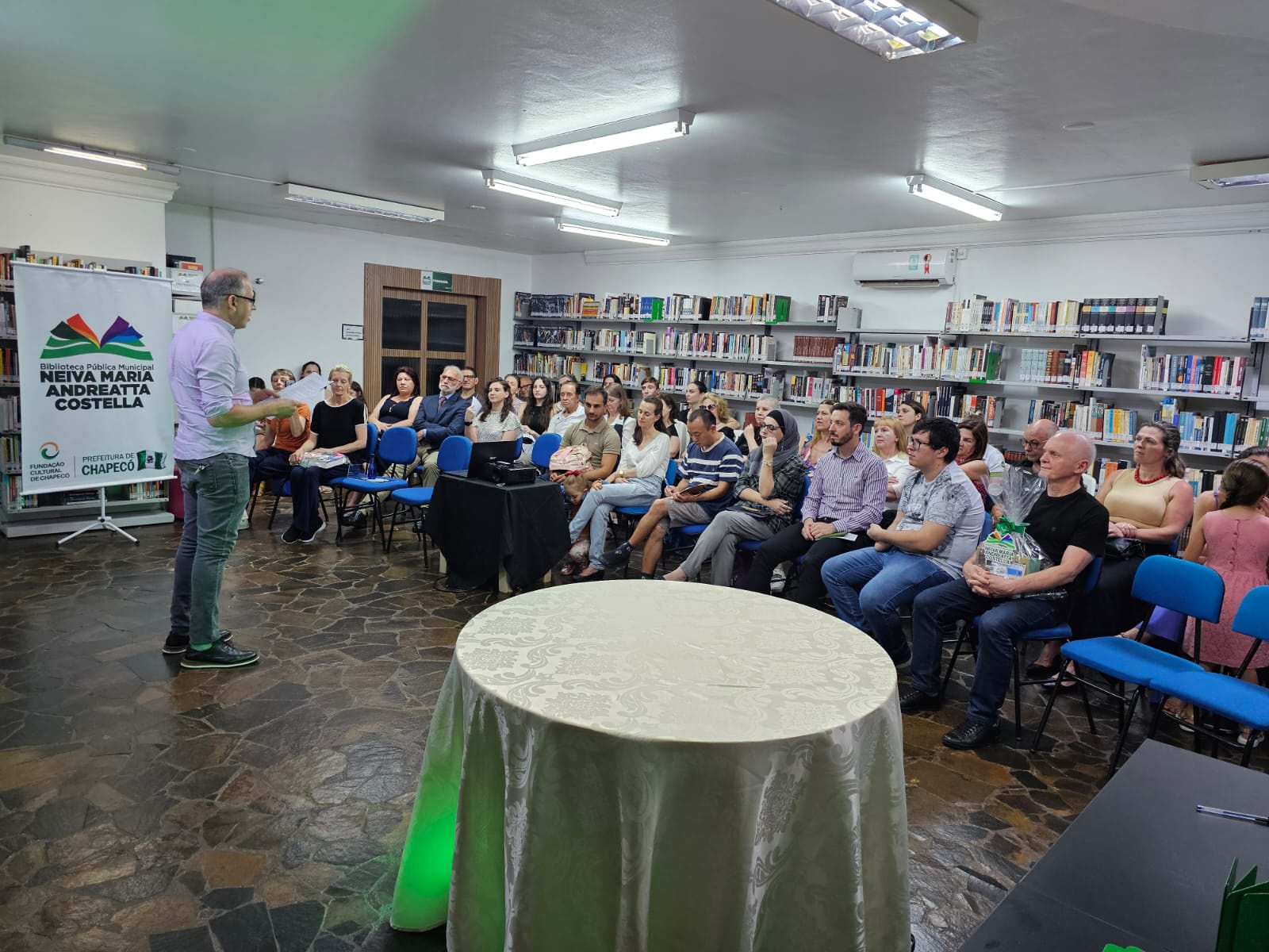 Durante a programação teve apresentação com professores e alunos da Orquestra Sinfônica de Chapecó, declamação de poesias e leitura de textos literários. Estiveram presentes o Presidente da Fundação Cultural de Chapecó, Fellipe de Quadros e a Bibliotecária Caroline Miotto Pecini. Também aconteceu a palestra com a Bibliotecária e Doutora em Ciência da Informação Jéssica Bedin, com a temática, Biblioteca Pública Presente!