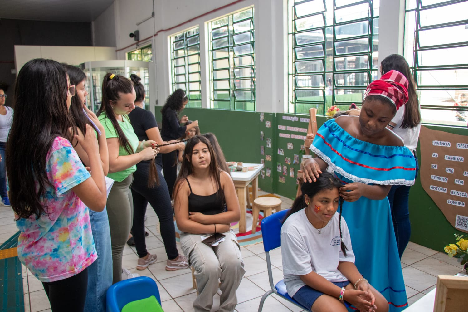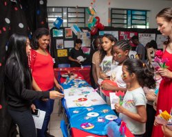 A organização da Feira das Nações foi pensada para abranger, preferencialmente, as nacionalidades que estão presentes na escola. O nosso objetivo enquanto instituição foi divulgar as diferentes nações, principalmente dos alunos que estudam aqui na nossa escola. Temos alunos da Venezuela, do Haiti, do Peru e da República Dominicana. Assim, sentimos a necessidade de aprender mais sobre esses países, bem como, abarcar a diversidade e a cultura de outros lugares do mundo, a fim de proporcionar a todos os envolvidos mais conhecimento, disse