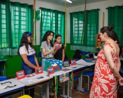 Débora Funkler, vice-gestora da escola. O trabalho interdisciplinar realizado nas instituições educativas fomenta a integração entre professores e alunos, pois os conteúdos trabalhados em um componente curricular complementam aqueles trabalhados em outro. Ficamos muito felizes quando vemos eventos que fomentam esse tipo de ação. Parabenizamos toda a equipe da EPC Cyro Sosnosky pela organização da feira e pela integração com a comunidade, disse Daniela Moratelli, Secretária de Educação.