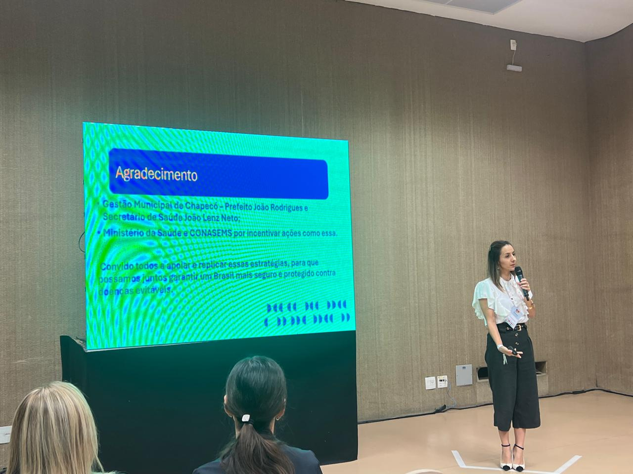 A coordenadora da Vigilância Epidemiológica de Chapecó, Lilian Galão, fez a apresentação durante o evento em Brasília, mostrando um aumento de 46% na vacinação no ano de 2022, em relação a 2022, e recebeu a premiação.