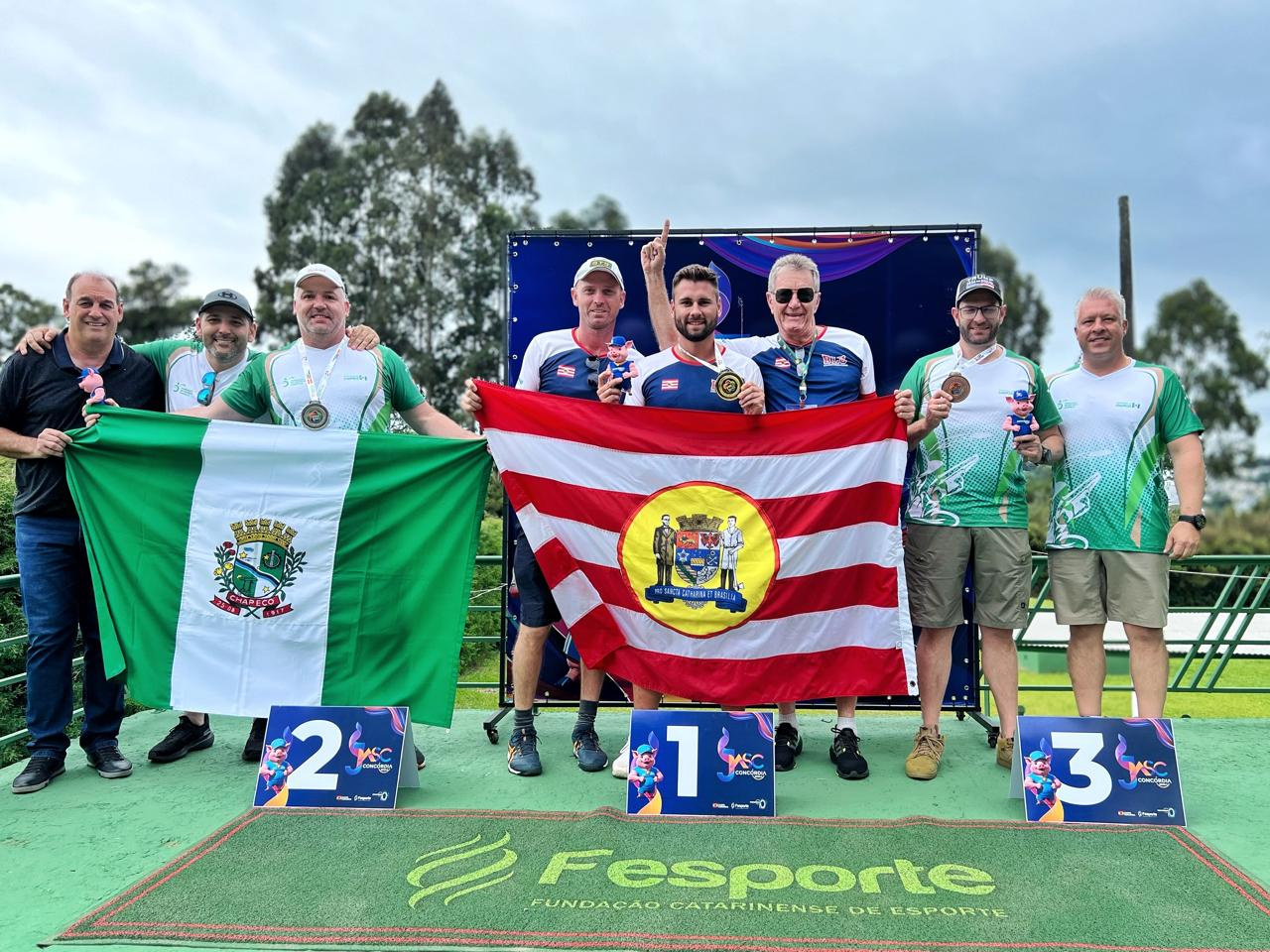 A modalidade de Tiro ao Prato encerrou nesta quinta-feira na cidade de Concórdia, onde acontece a 63ª edição dos Jogos Abertos de Santa Catarina (JASC). No último dia de competições da modalidade, o município de Chapecó conquistou três medalhas e garantiu o troféu de vice-campeão geral. Na prova individual de Trap Double, César Luiz Simioni conquistou a Prata e, Emerson Igor Zin, o Bronze. Somando os pontos de todos os atiradores, por equipes, Chapecó também ficou com a medalha de Prata. Na quarta-feira havia acontecido a prova de Trap Americano. Somando as duas provas, Chapecó conquistou o troféu de segundo lugar na classificação geral.