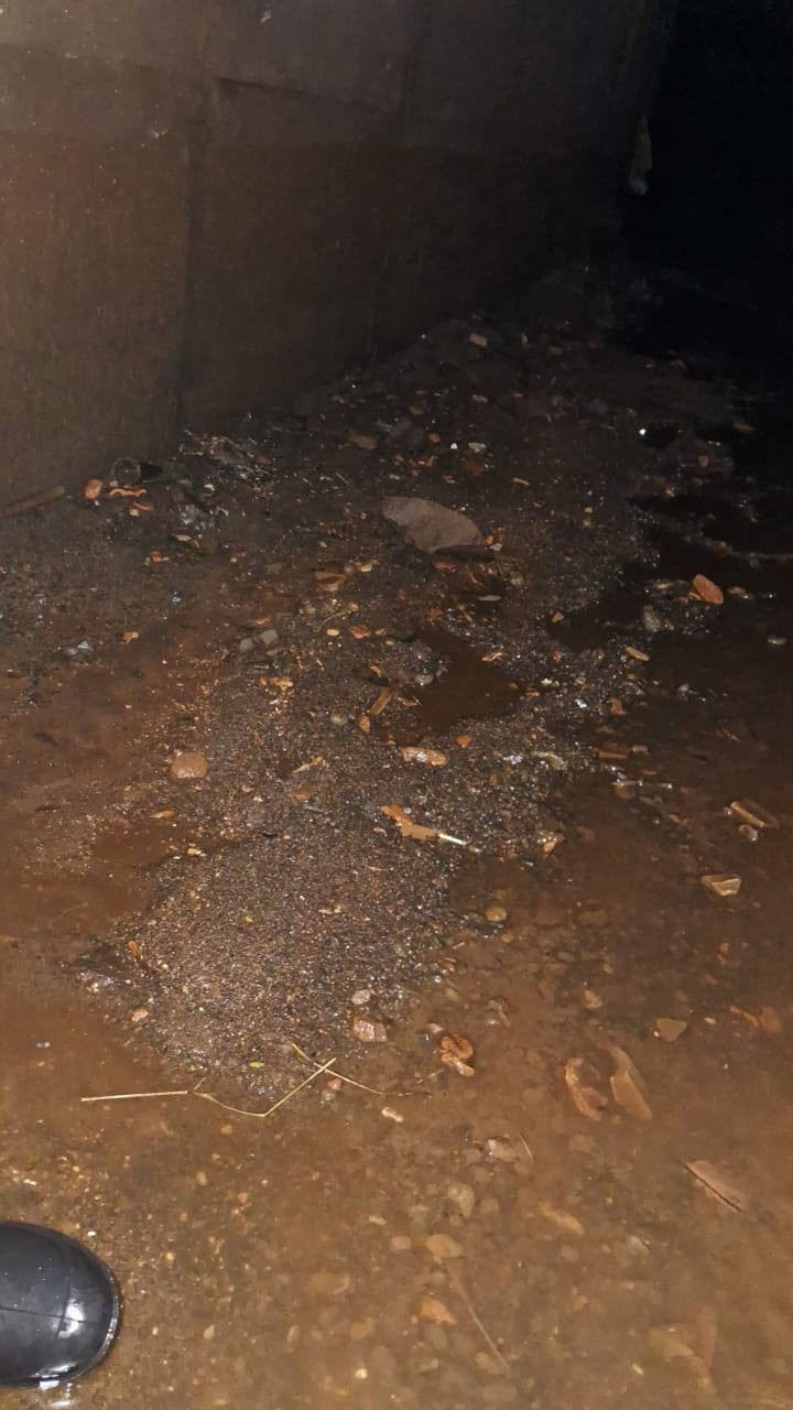 Também foi realizada a limpeza no cruzamento das ruas Domingos Baldissera com a Felipe Câmara, onde chegou a estourar uma tampa da galeria e danificar o asfalto com a força da água.