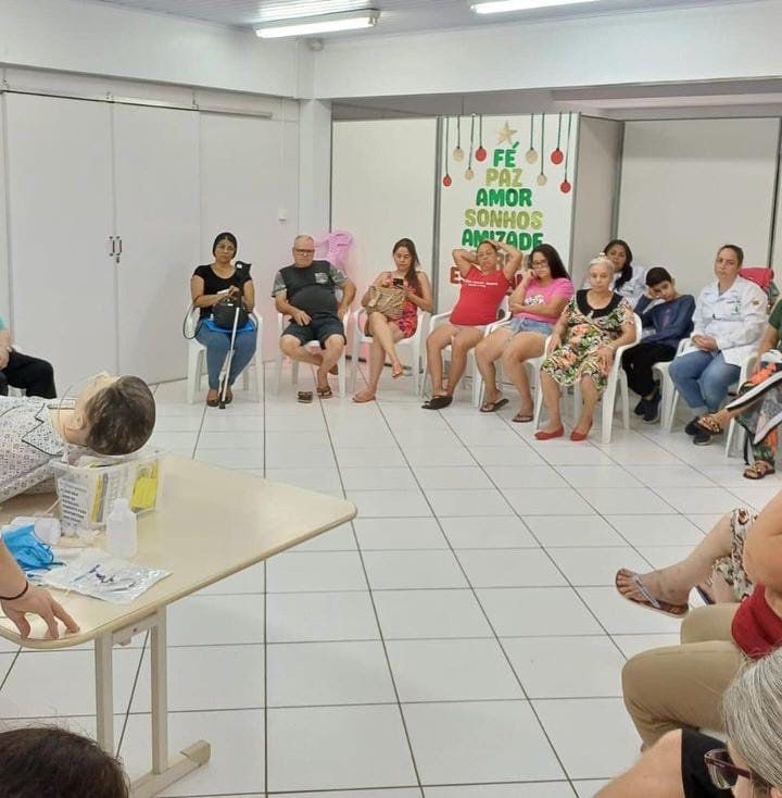 Na quinta-feira (21), em parceria com o Curso de Técnico em Enfermagem do CEDUP Chapecó, foi realizado um treinamento com cuidadores de idosos sobre o manejo com pessoas acamadas (troca de posição, higiene de sonda, alimentação).