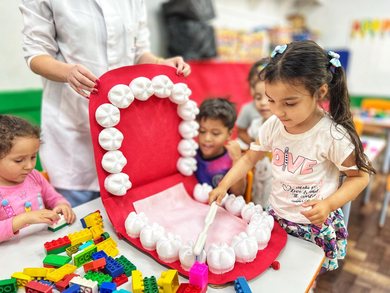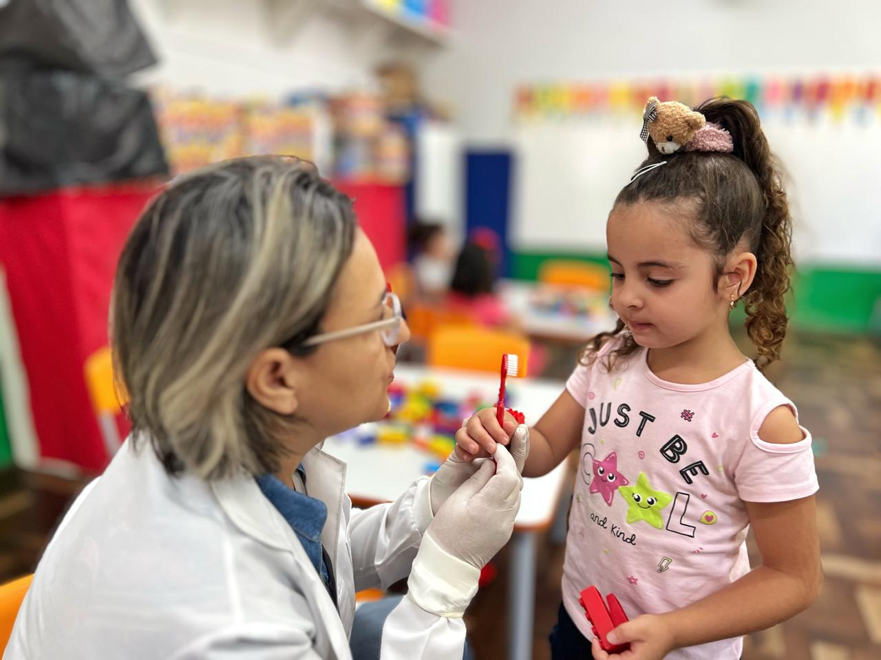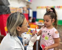 Cuidar da saúde bucal não é apenas ir ao dentista, envolve os cuidados preventivos. E um desses cuidados é a escovação e o uso do flúor. Por isso, as equipes de saúde bucal da Secretaria de Saúde visitam as escolas e realizam atividades de orientação e prevenção com os alunos desde a Educação Infantil até o quinto ano do Ensino Fundamental. Ao todo, a equipe de saúde bucal encerra o trabalho no ano letivo de 2024 com a realização de aproximadamente 60.000 procedimentos coletivos. As atividades retornarão no início do próximo ano letivo.