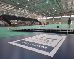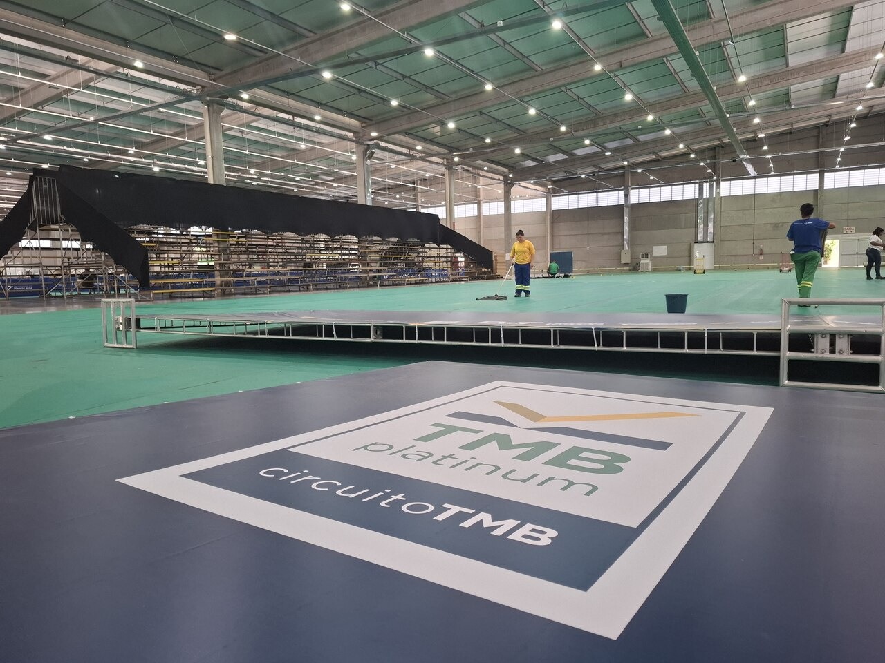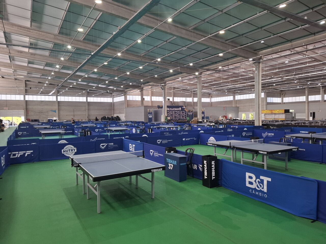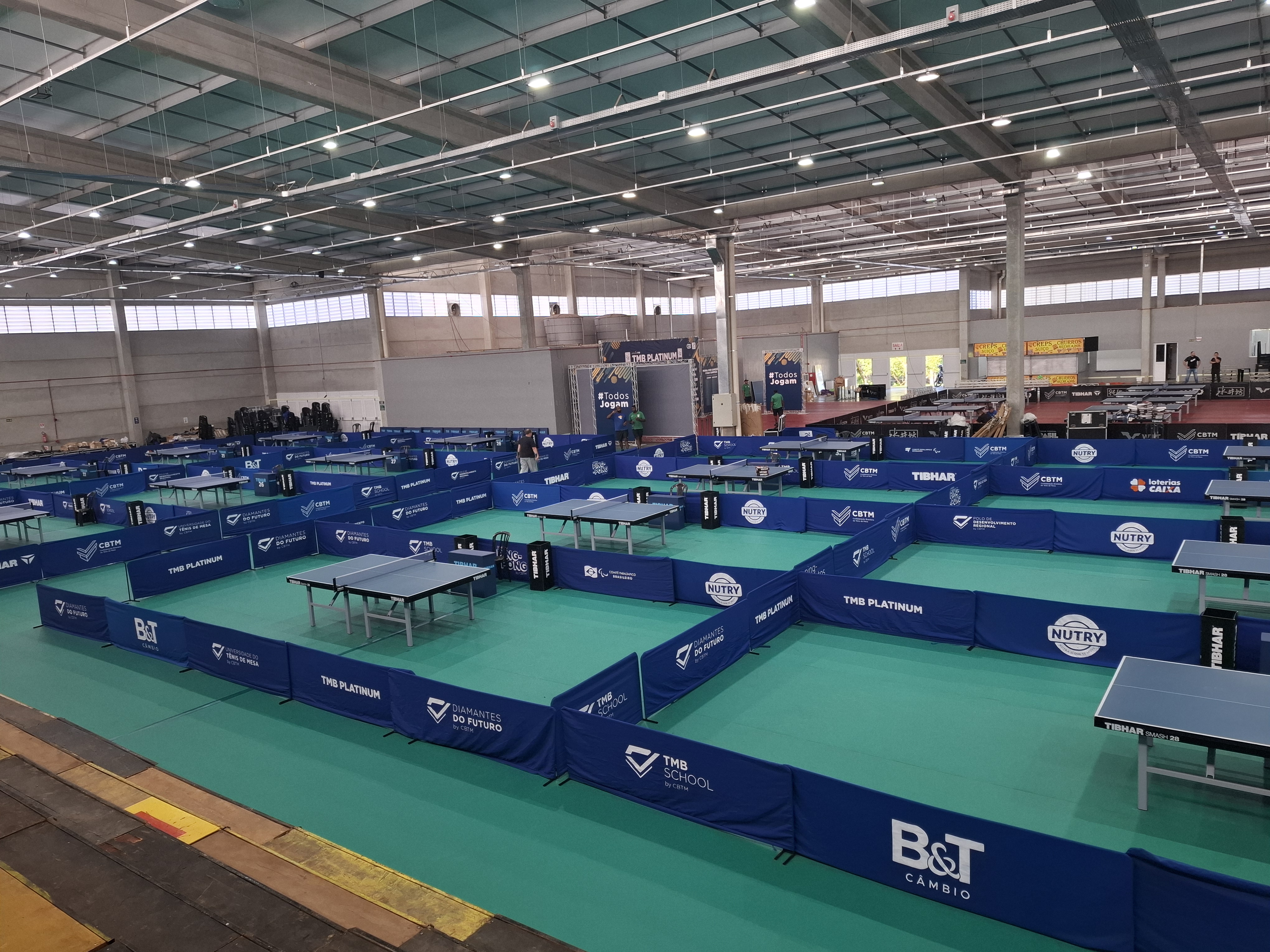 Estrutura sendo montada para a etapa final do TMB Platinum Campeonato Brasileiro de Tênis de Mesa. Competição começa nesta sexta-feira (6), com jogos a partir das 8h30, no pavilhão 1 do Parque de Exposições Valmor Lunardi (Efapi).