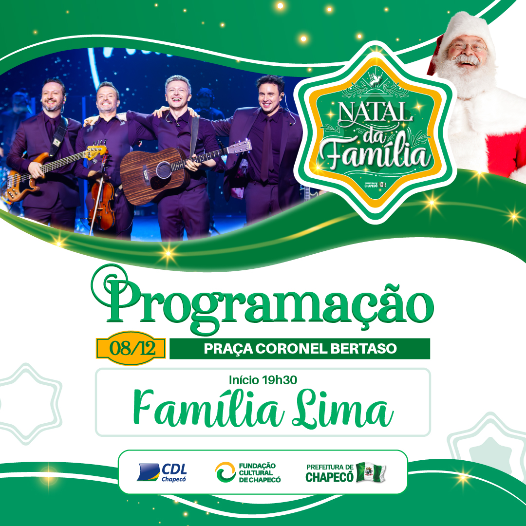 No domingo (08) mais um show nacional fará parte da programação natalina de Chapecó. A partir das 19h30, na Praça Coronel Bertaso, a apresentação será da Família Lima.