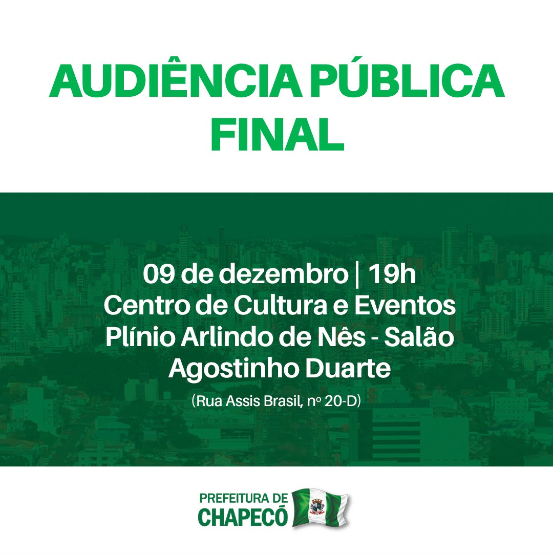 Após a realização das 12 audiências públicas regionalizadas de revisão do Plano Diretor, que encerrou na quarta-feira (4), no Cristo Rei, a Secretaria de Desenvolvimento Sustentável e Obras Estruturantes de Chapecó publicou nesta quinta-feira (5) a compilação das propostas apresentadas e acatadas durante as audiências. Os documentos podem ser acessados no link https://drive.google.com/drive/folders/1VymazUFhpKweX-K8uvTKkyeBqwlAC8oR ou pelo site da Prefeitura (www.chapeco.sc.gov.br).