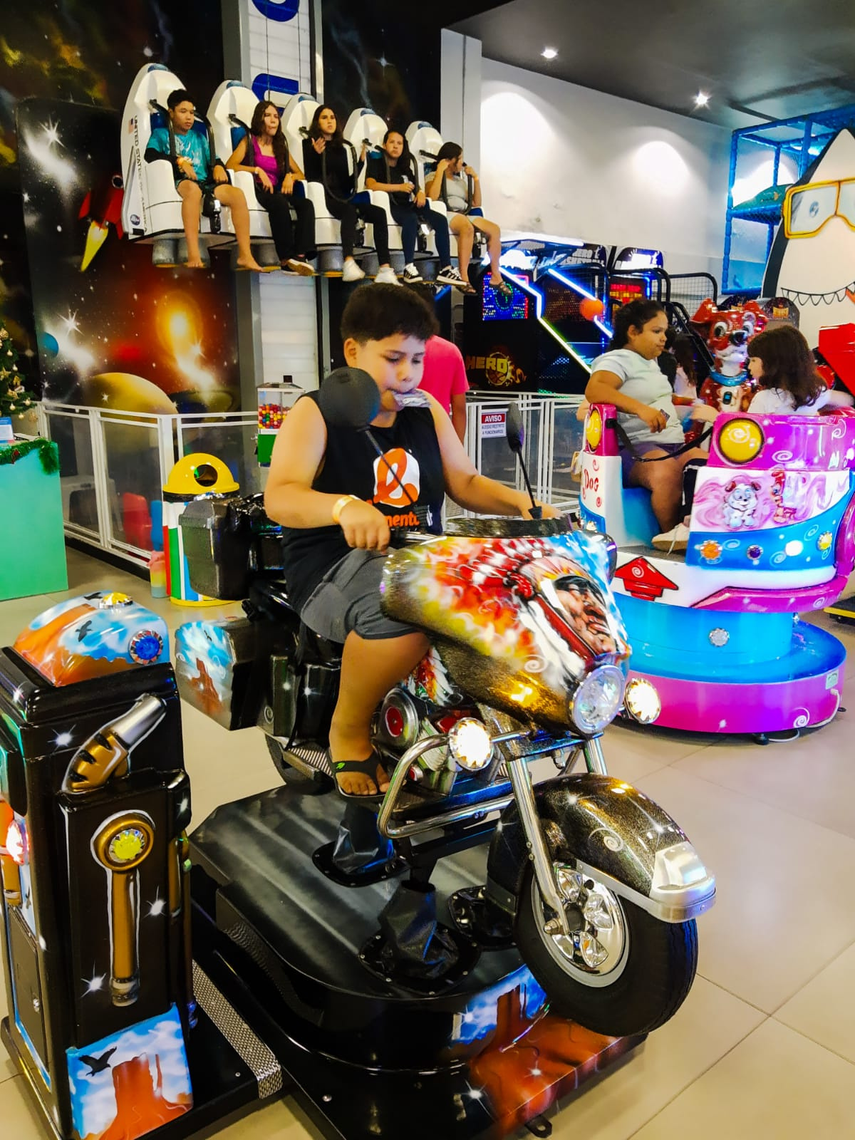 A ação foi na segunda-feira (9) e contou com a parceria da empresa Mania Games, para garantir as brincadeiras e a diversão da garotada. O Papai Noel do shopping colaborou com a entrega dos presentes (kits com material escolar) doados de forma voluntária por pessoas físicas e pelo parceiro Piazza Tratores. Também contamos com a doação de pulseirinhas pela Pegepel Impressões. A tarde foi finalizada com um lanche saboroso.