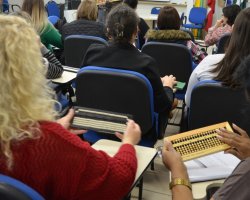 Além disso, também existe em Chapecó o NAPPB Núcleo de Apoio Pedagógico e Produção de Braille. Ele funciona em parceria com a Prefeitura de Chapecó, por meio da Secretaria de Educação e da Gerência de Educação e é uma ação concreta no sentido de expandir o atendimento educacional às pessoas com deficiência visual, assegurando a democratização do acesso e do conhecimento através da produção e impressão de materiais em Braille e produção de livros no formato Daisy. São produzidos livros didáticos em Braille e em Daysi para alunos com deficiência visual que frequentam escolas estaduais e municipais de 38 municípios da região, comentou Sandra.