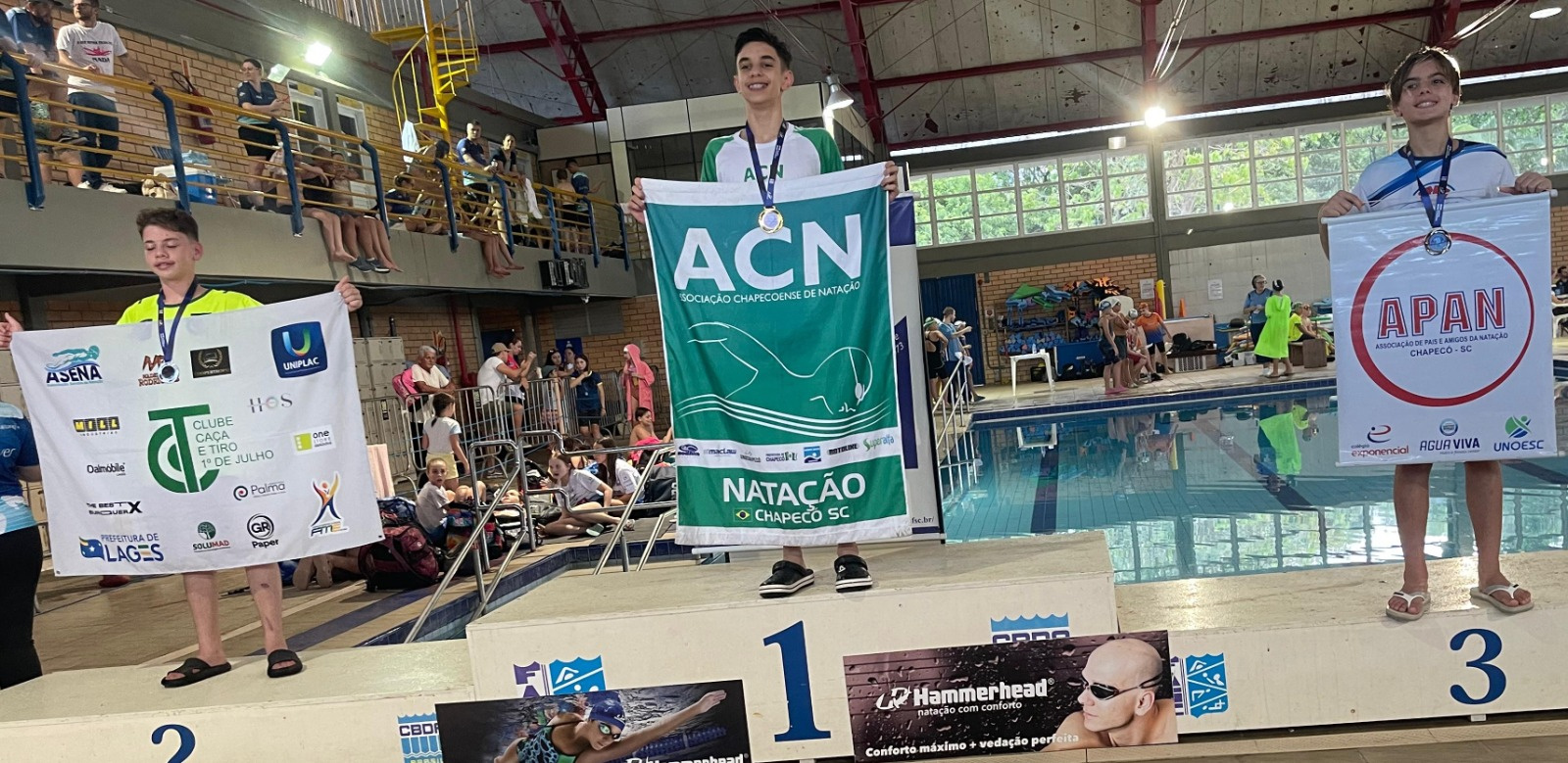 Nos dias 13 e 14 de dezembro a equipe de natação da PREFEITURA MUNICIPAL DE CHAPECÓ / AQUATIC CENTER / UNOCHAPECÓ / DE MOURA VIAGENS / ASSOCIAÇÃO CHAPECOENSE DE NATAÇÃO disputou a quarta e última etapa do Campeonato Catarinense, válido pelas categorias MIRIM (08 a 10 anos) e PETIZ (11 e 12 anos). A piscina olímpica da UFSC, em Florianópolis, recebeu 364 nadadores, de 22 equipes, que disputaram as medalhas oferecidas aos vencedores das 90 provas do programa.