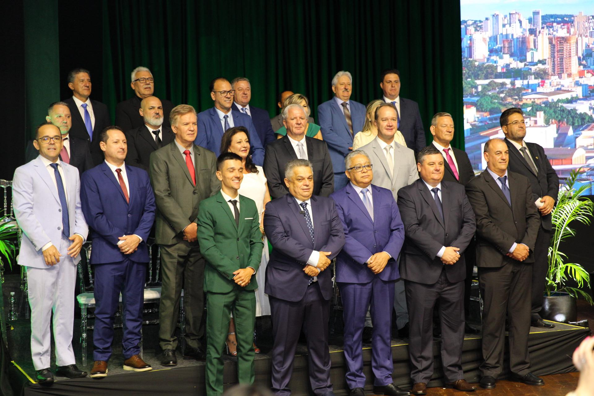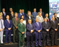 João Rodrigues foi empossado na manhã desta quarta-feira (1) para seu quarto mandato como prefeito de Chapecó, algo inédito na história do município. A solenidade foi no Teatro Municipal do Centro de Cultura e Eventos Plínio Arlindo de Nes. Também foram empossados o novo vice-prefeito, Valmor Junior Scolari. Houve ainda a posse dos 21 vereadores eleitos na eleição passada. A cerimônia, organizada pela Câmara de Vereadores, foi presidida pelo vereador João Maria Marques Rosa, que foi o presidente da sessão. "Nós eleitos vamos honrar os votos que recebemos e trabalhar para o bem-estar de Chapecó" , disse Rosa. O vereador Wilson Cidrão foi o secretário.