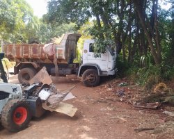 As equipes da Secretaria de Serviços Urbanos realizaram nesta quarta-feira uma ação de limpeza de descarte clandestino de lixo, na linha Scussiato. De acordo com a gerente de Resíduos Sólidos, Graciela Heckler, foram retiradas duas caçambas de descarte irregular.