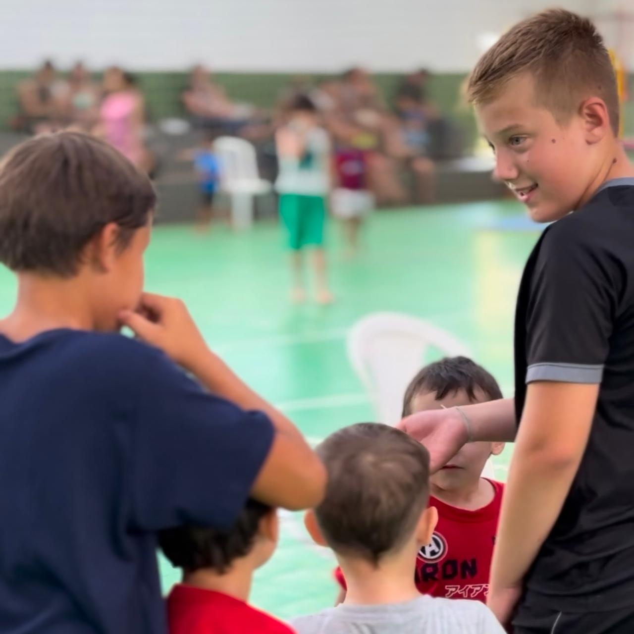 O Otávio Augusto Giesel, de 11 anos, é um dos participantes da II edição da Colônia de Férias no Verdão. Para ele, é importante esses eventos para que as crianças pratiquem atividades físicas, consigam sair de casa, participem de brincadeiras e atividades. O evento é importante para as crianças sair das tecnologias, celular e tv, e poder aproveitar com os amigos, comentou.