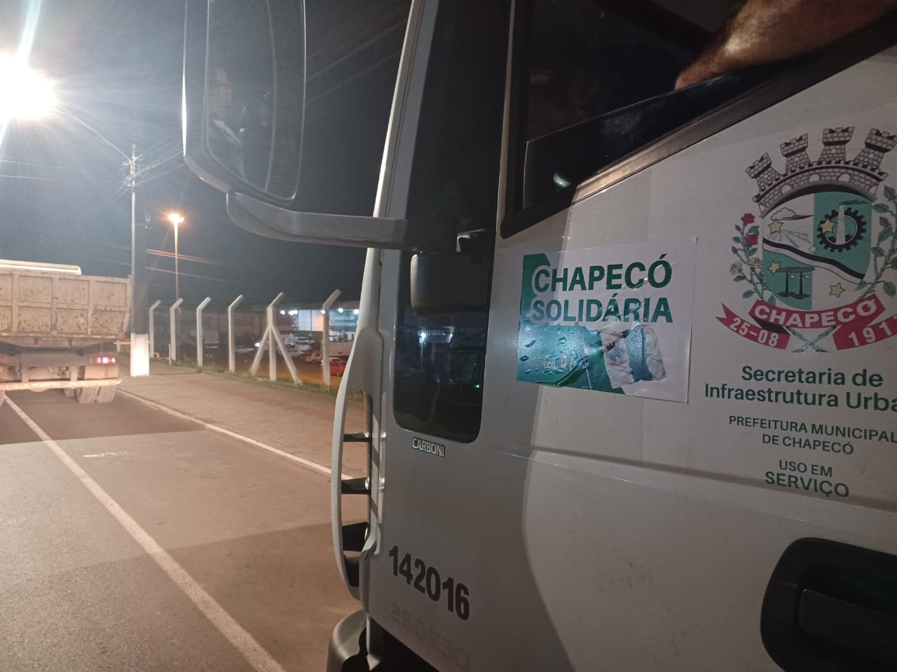 Às 4h30 deste sábado um comboio com cerca de dez veículos, caminhões e máquinas pesadas partiu de Chapecó em direção a Balneário Camboriú, com o objetivo de auxiliar os catarinenses atingidos pelas chuvas.