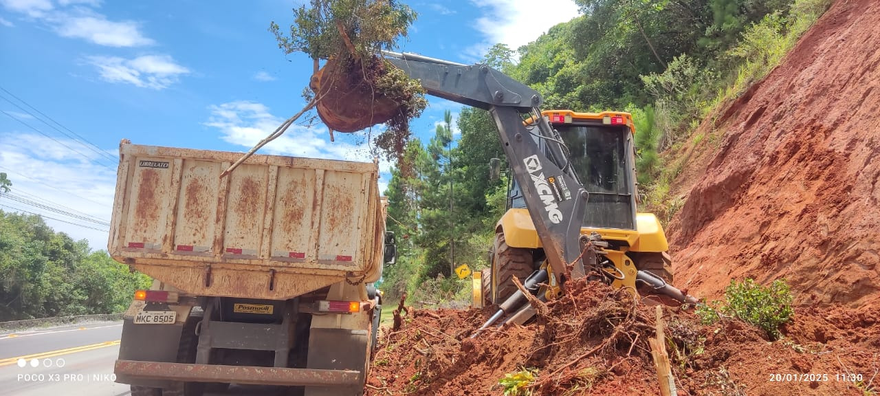 Na madrugada de sábado partiu de Chapecó um comboio com quatro caminhões caçamba, caminhão-pipa, três caminhões prancha com uma retroescavadeiras e duas escavadeiras hidráulicas (PCs), e quatro veículos de apoio com equipes da Defesa Civil, Guarda Municipal, NAPA e Secretaria de Infraestrutura. Cerca de 20 pessoas atuaram no auxílio aos dois municípios do Litoral Norte.