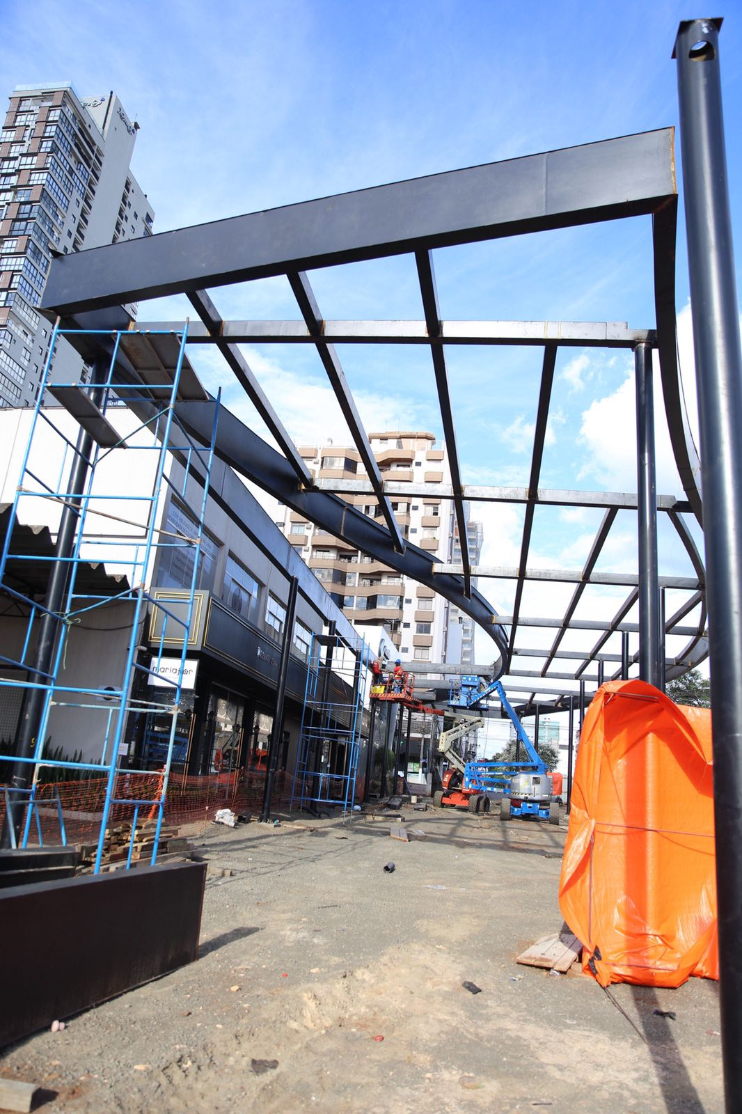 As obras do Boulevard Benjamin Constant entraram em nova fase neste final de janeiro, com o início da montagem da estrutura da cobertura, na quadra entre a as avenidas Nereu Ramos e Getúlio Vargas. Na manhã desta quarta-feira (29), o prefeito João Rodrigues foi conferir o andamento dos trabalhos.