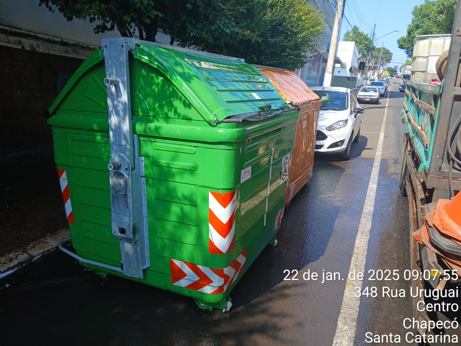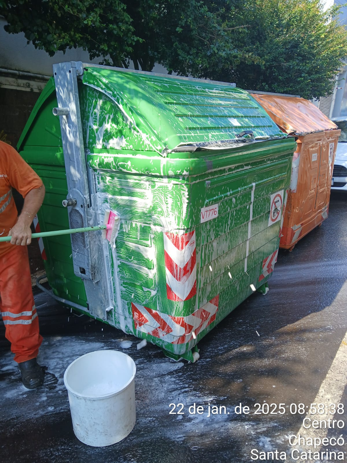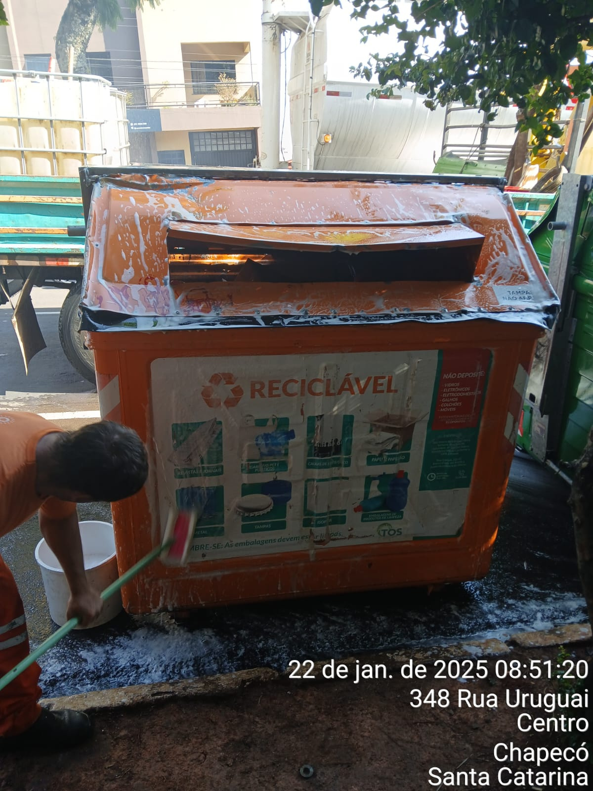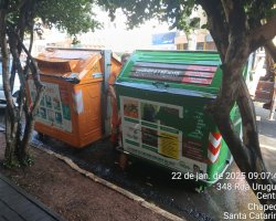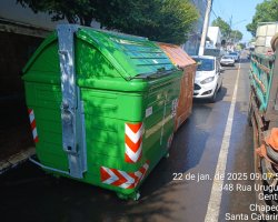 O município de Chapecó conta com 660 contêineres orgânicos (verdes) e 540 da coleta seletiva (laranjas) automatizada, além de 31 lixeiras subterrâneas, que passam por limpeza e higienização.