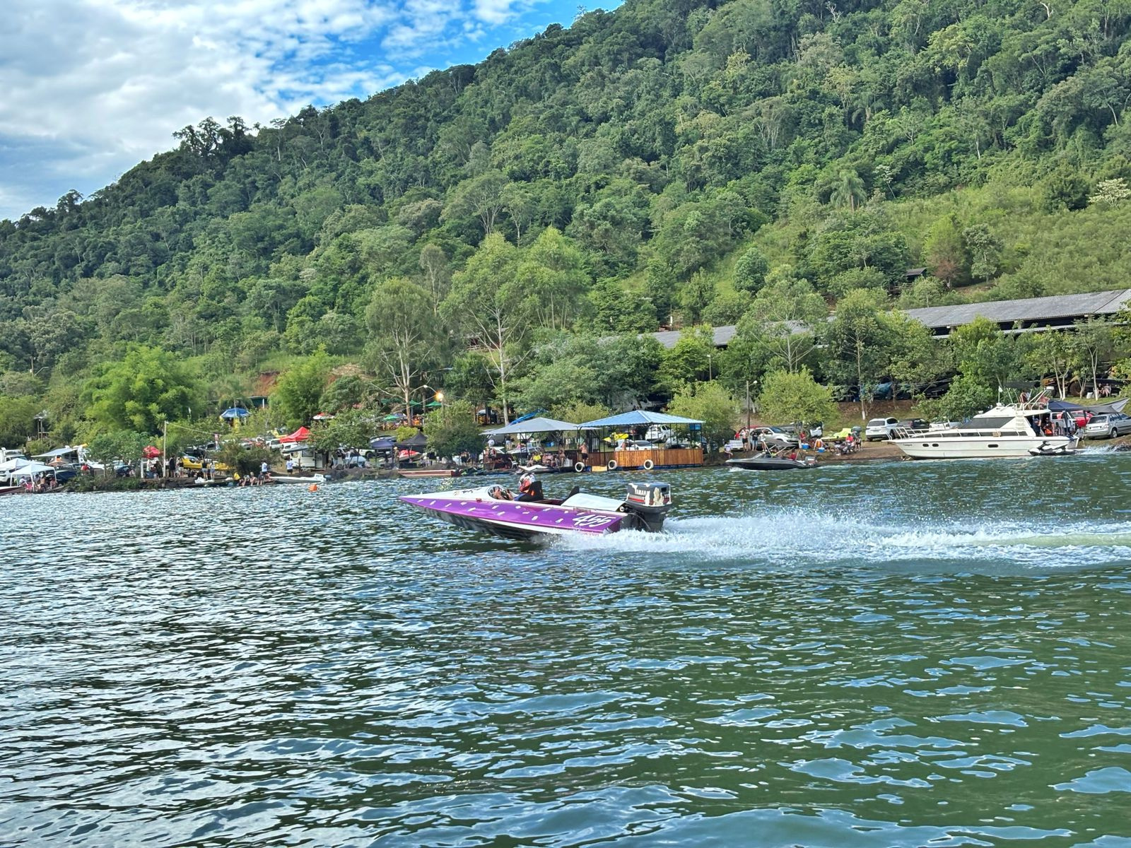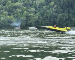 Cerca de oito mil pessoas assistiram pilotos de cinco países disputando provas de Motonáutica, no sábado e no domingo, no porto Goio-Ên, em Chapecó, segundo cálculo da comissão organizadora. As águas do Lago formado pela barragem Foz do Chapecó, no Rio Uruguai, tiveram belas disputas entre os pilotos de cinco países: Argentina, Bélgica, Brasil, México e Porto Rico.
