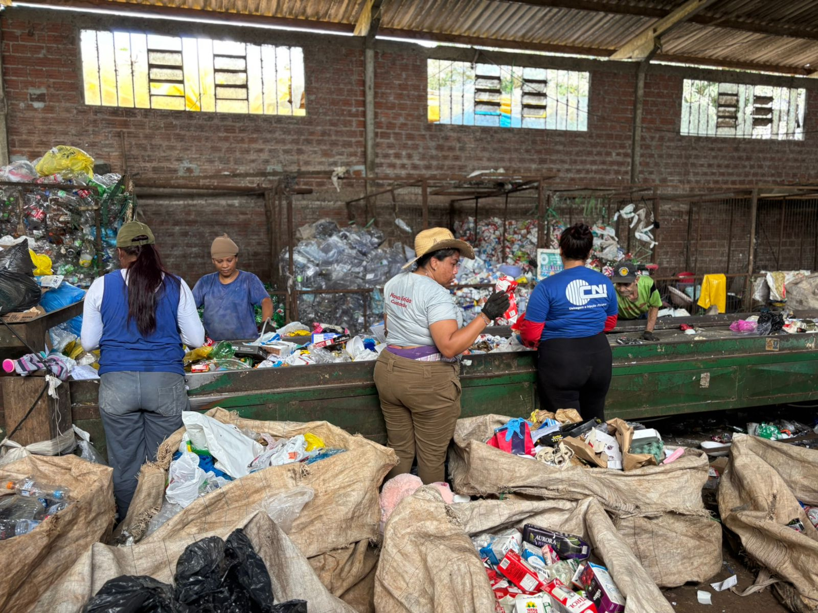 A gente tem que descartar muita coisa pois vem orgânico misturado no meio. Por isso a gente pede que a população faça a separação correta em casa, afirma Orides Veiga, presidente da ACEMAR, uma das 12 associações de catadores. Somando com as duas cooperativas são 173 associados que vivem da reciclagem.