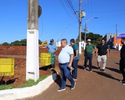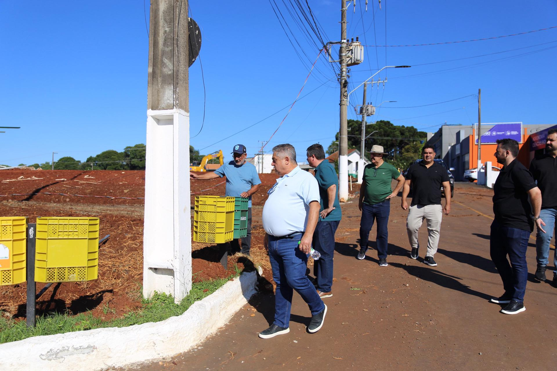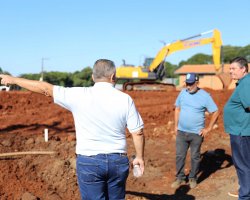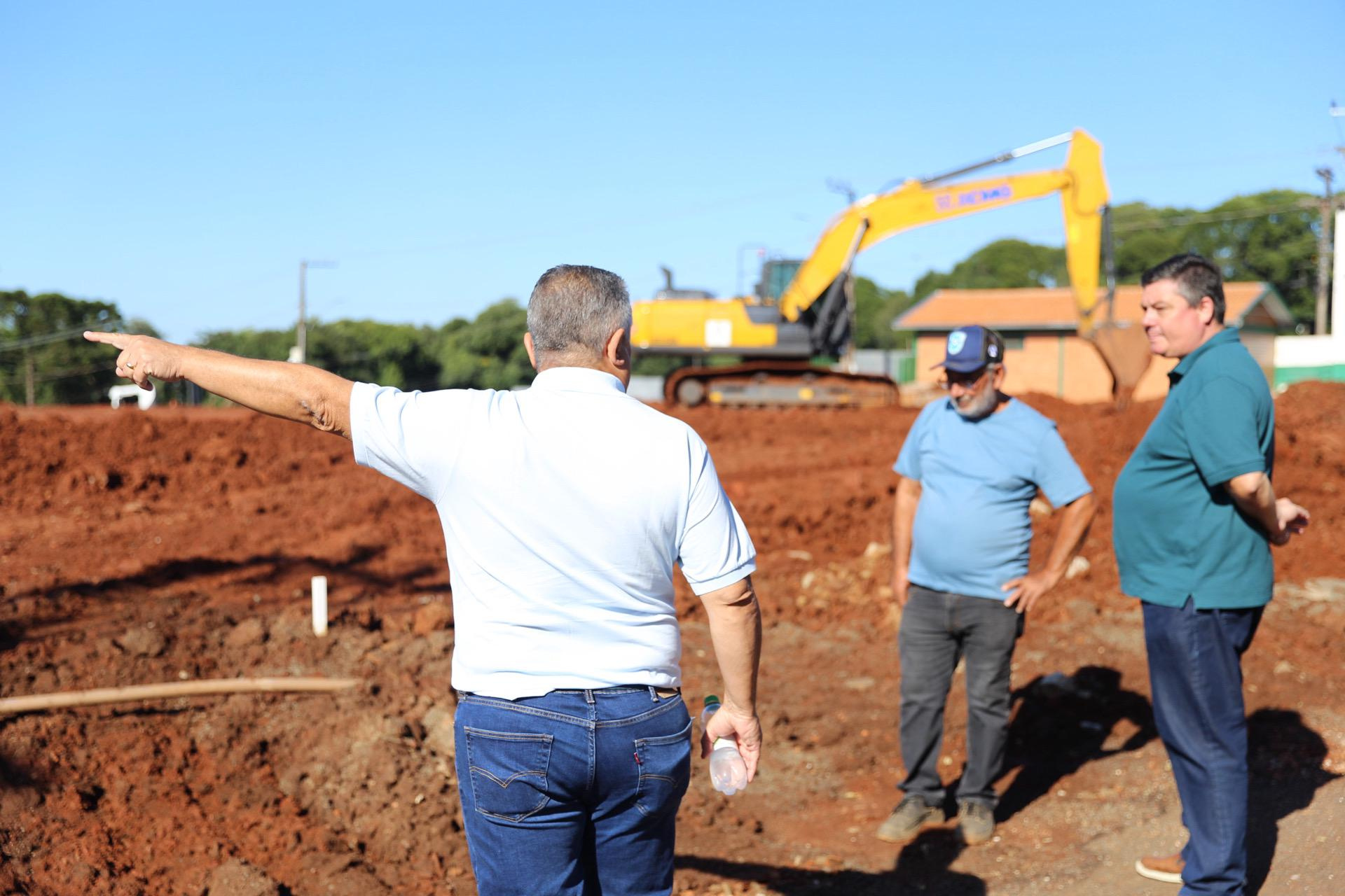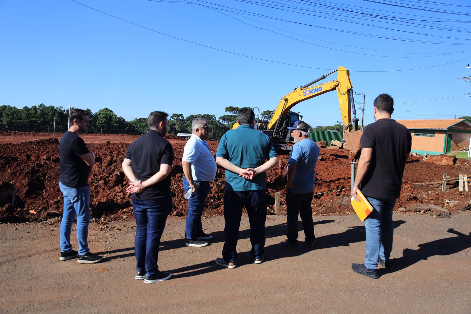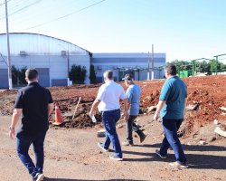 A Prefeitura de Chapecó está realizando a terraplanagem do local onde será construído o novo Pavilhão III do Parque de Exposições Dr. Valmor Ernesto Lunardi. Na manhã desta terça-feira o prefeito João Rodrigues esteve acompanhando as obras, acompanhado do vice-prefeito, Valmor Scolari, do secretário de Obras e Infraestrutura Urbana, Luiz Paulo Carraro, do secretário de Desenvolvimento Sustentável e Obras Estruturantes, Maurício Lise da Rocha, do secretário de Desenvolvimento Econômico, Turismo e Inovação, Márcio da Paixão Rodrigues, do presidente da Efapi 2025, Felipe Balzan, e do coordenador adjunto da feira, Luiz Roberto Tillmann.