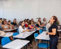 A Secretária de Educação, Astrit Tozzo, destacou a relevância da formação continuada. Para ela, estes momentos são muito importantes para alinhar o trabalho da Rede Municipal, pois permitem a troca de experiências e boas práticas, esclarecimento de dúvidas, interação com profissionais de outros espaços e diálogo com a nossa equipe de articuladores. Nosso objetivo é proporcionar sempre o melhor para os nossos estudantes e a formação continuada dos professores é parte fundamental para alcançá-lo, afirmou.
