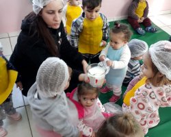 De acordo com a professora Gracieli Bottini Ribeiro, após observações diárias e sabendo que as crianças estão em processo de formação do sistema imunológico, pesquisamos sobre alimentos que pudessem contribuir para o fortalecimento das defesas do organismo. Através de leituras e por saber da grande propriedade nutritiva do Kefir - um alimento natural usado de diversas formas na culinária e que cuida do corpo de dentro para fora, descobrimos que ele é rico em cálcio, vitaminas, probiótico e em outros nutrientes. A professora comentou que por ser um alimento pouco conhecido, foram desenvolvidas atividades sobre ele em sala e com as famílias. Além de ser uma atividade divertida, proporcionou um momento de aprendizado estimulando uma alimentação saudável e o conhecimento de um novo alimento, explicou.
