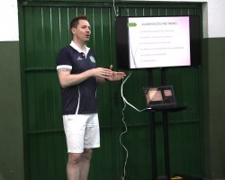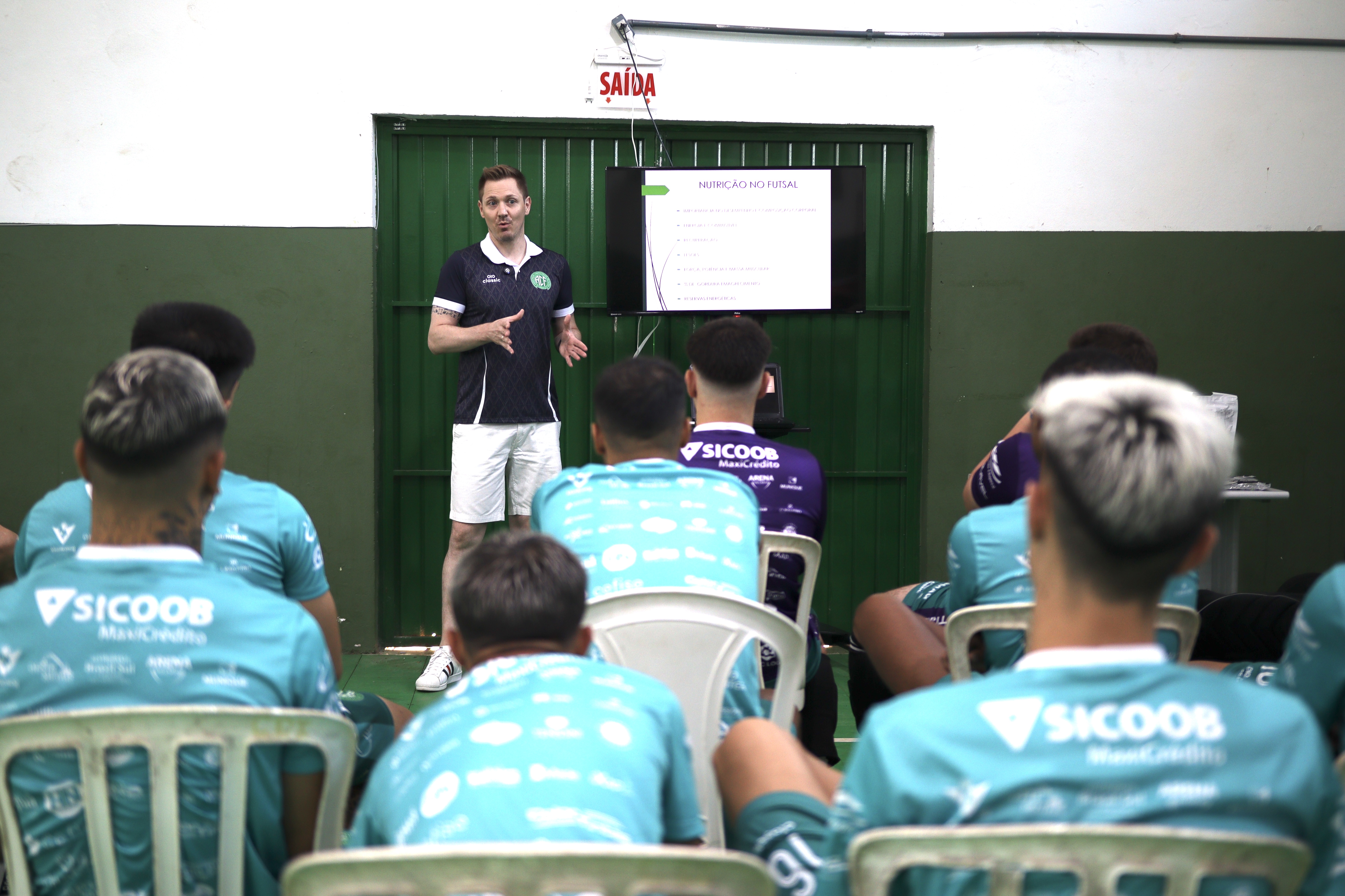 O grupo de atletas da Prefeitura de Chapecó/Chapecoense/Unochapecó assistiram a uma palestra sobre nutrição, na manhã deste sábado (8), no ginásio do Complexo Esportivo Verdão. As orientações foram repassadas pelo nutricionista do clube, Reges Costa. Orientações foram repassadas pelo nutricionista do clube, Reges Costa, neste sábado (7).