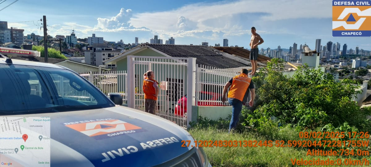 A chuva e ventos fortes ocorridos no início da tarde de sábado causaram alguns estragos em Chapecó, com quedas de árvores e destelhamentos. O prefeito de Chapecó, João Rodrigues, e o vice-prefeito, Valmor Scolari, acionaram rapidamente as estruturas da Administração Municipal, entregando elas a Guarda Municipal e a Defesa Civil, para identificar os problemas e auxiliar no atendimento, inclusive com distribuição de lonas. A Secretaria de Serviços Urbanos e Zeladoria está com equipes trabalhando na remoção de árvores e galhos caídos. Houve caso de queda de galhos no Ecoparque. Outras secretarias e superintendências também estão verificando a situação.