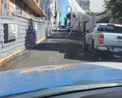 Rua Palermo, nº 212 Queda de tecido protetor de fachada de obra sobre fios de alta tensão;