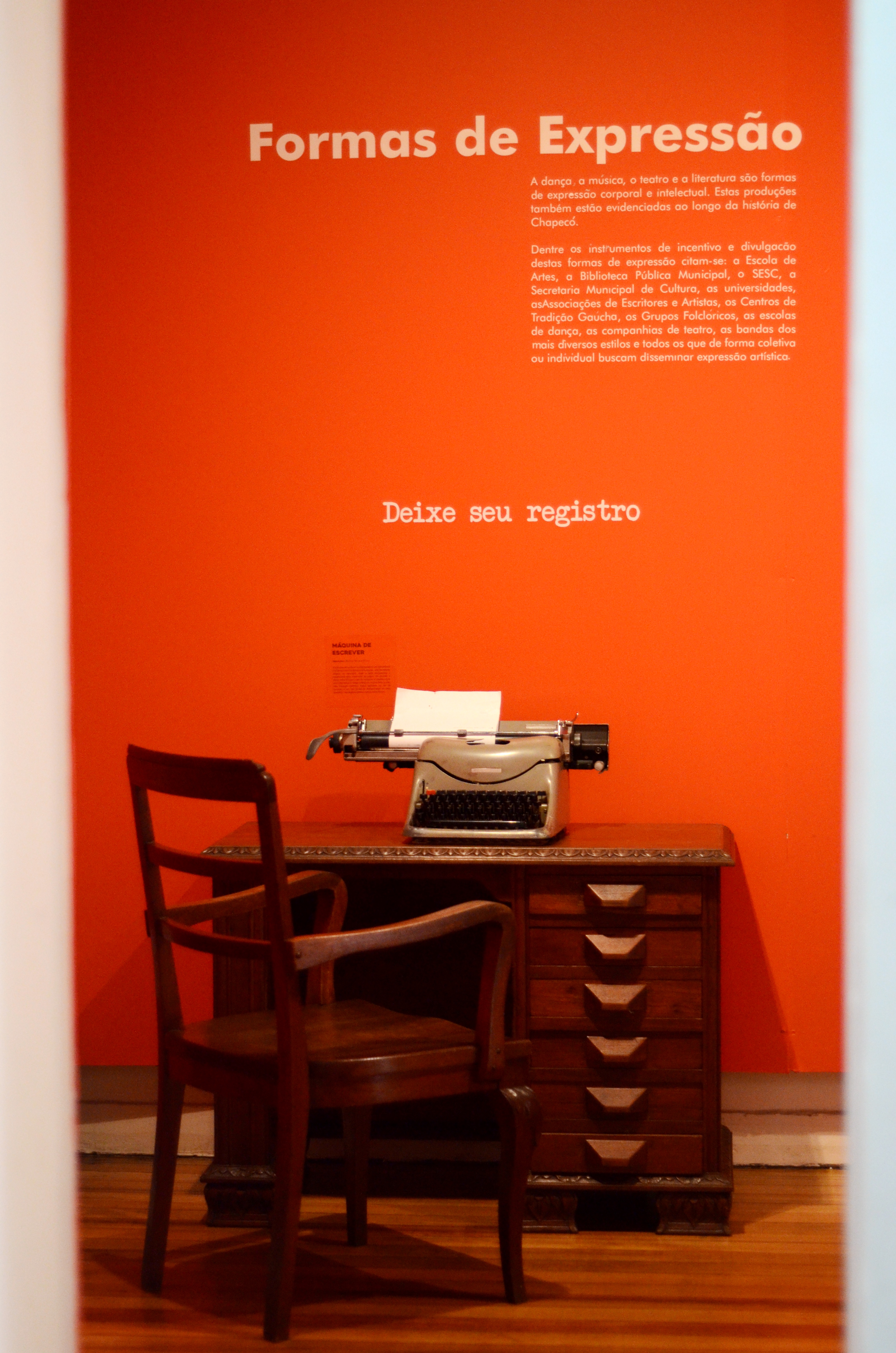 Outra exposição em andamento no mesmo prédio é a Descontinuidades: Espaços museológicos públicos de Chapecó, que conta a trajetória dos museus públicos do Município, e discute impactos das políticas públicas na preservação dos bens culturais e na memória local.