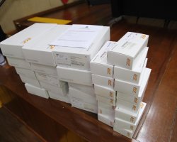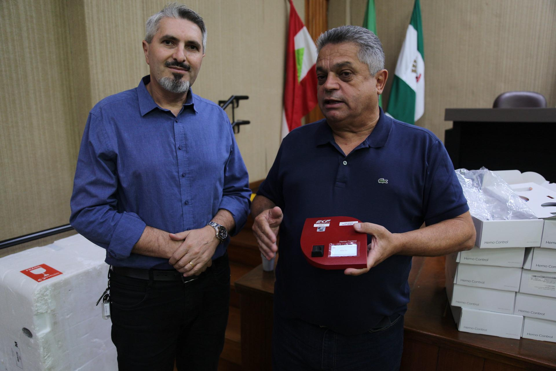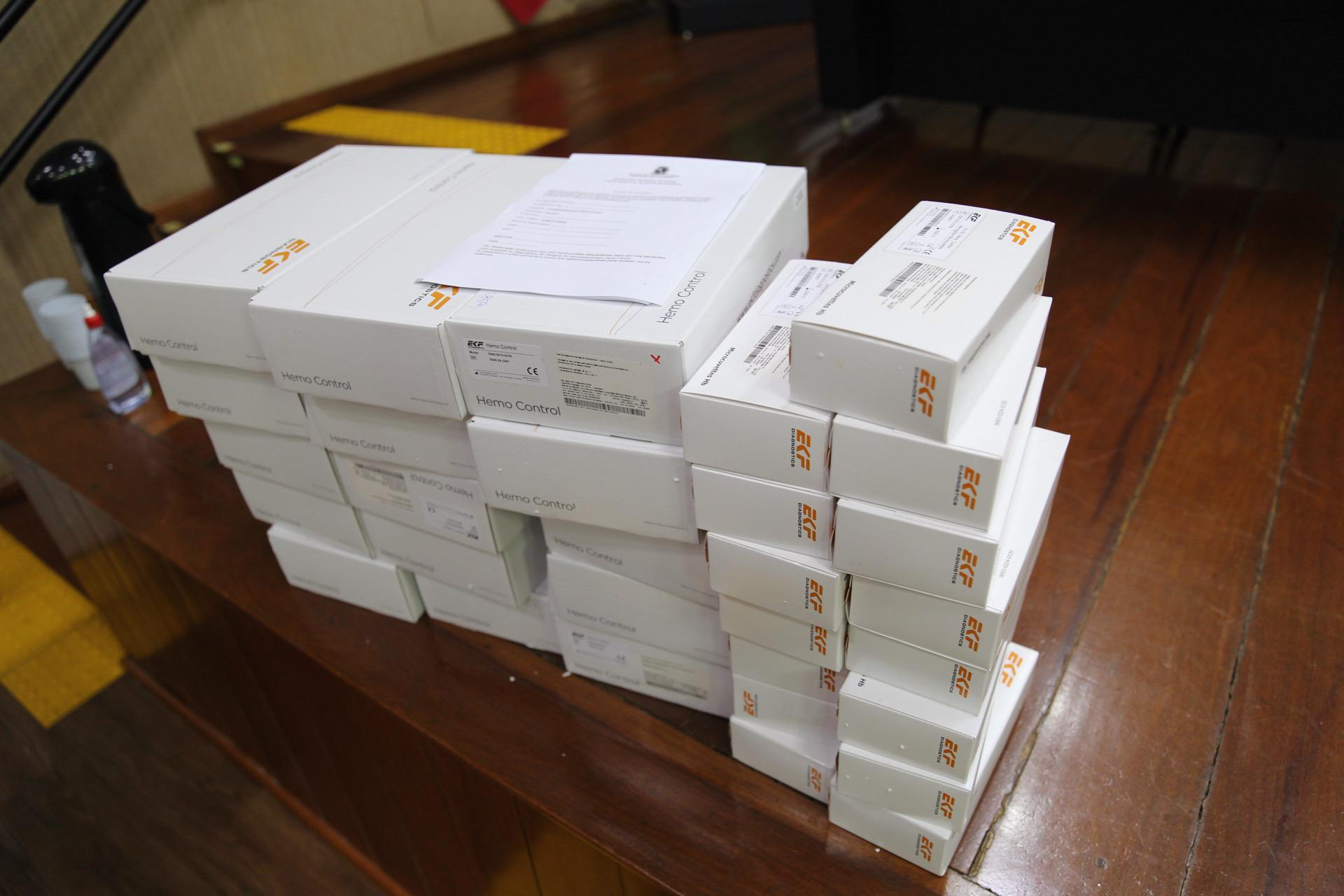 Também foram entregues os hemoglobinômetros para cada coordenador, para realização de testes rápidos de hematócrito, como forma de detectar precocemente o agravamento de casos suspeitos de Dengue.