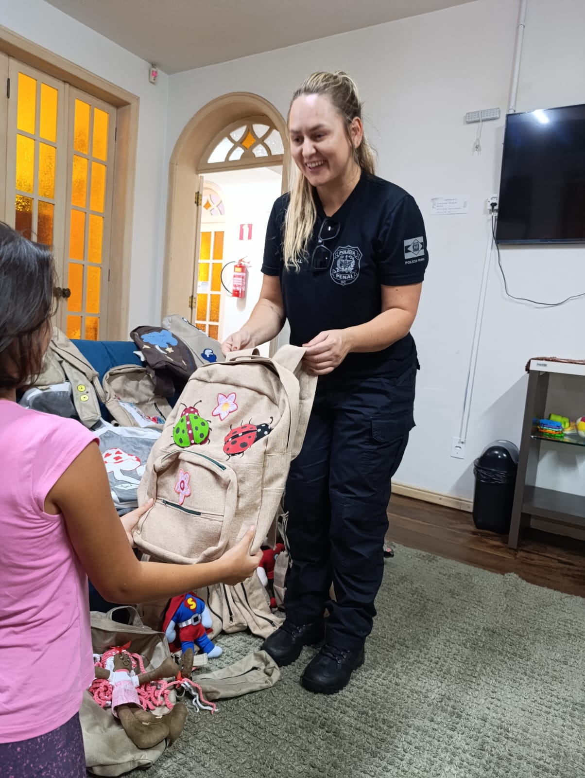 O Abrigo Municipal mantido Prefeitura de Chapecó recebeu na semana passada a doação de mochilas do projeto social "Mãos que Libertam", realizado no Presídio Regional Feminino de Chapecó.