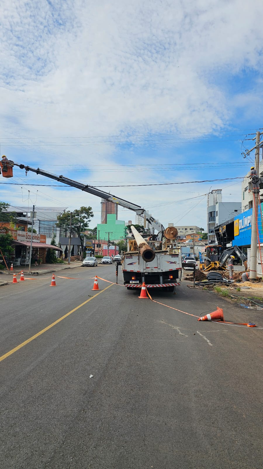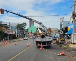 A Prefeitura de Chapecó e a Construtora Oliveira informam que neste sábado (01) as atividades seguem na Rua Borges de Medeiros. Nessa etapa estão sendo retirados postes de iluminação, fase importante para sequência das obras. O trecho do alargamento é de 1,8km e terá um investimento de R$ 5,2 milhões. Após concluído vai melhorar a fluidez do trânsito na região.