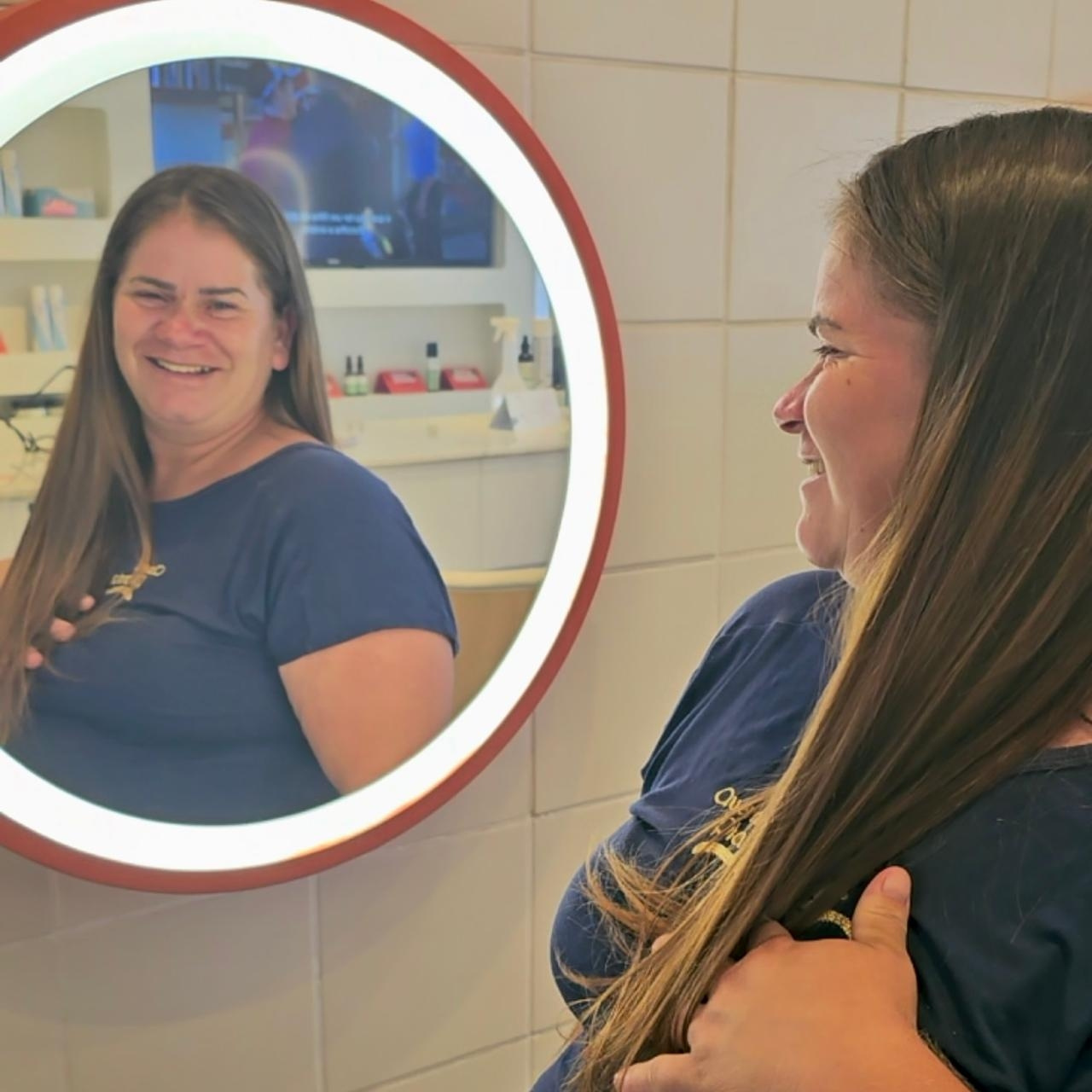 Natalina Oliveira e Cristiane Ribeiro foram duas das participantes da programação. Para elas, foi muito legal receber o carinho e cuidado nesse dia. Fazia tempo que eu não ia no salão. Foi muito bom poder participar, disse Natalina. Já para Cristiane o carinho recebido é gratificante. Muito bom poder tirar um tempinho pra cuidar da gente. Foi muito bom esse momento, afirmou.